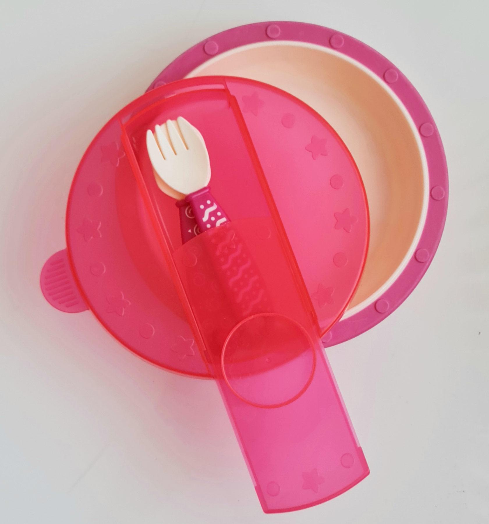 komplet za hranjenje, globok krožnik s pokrovom za zapiranje in prostorom za pribor