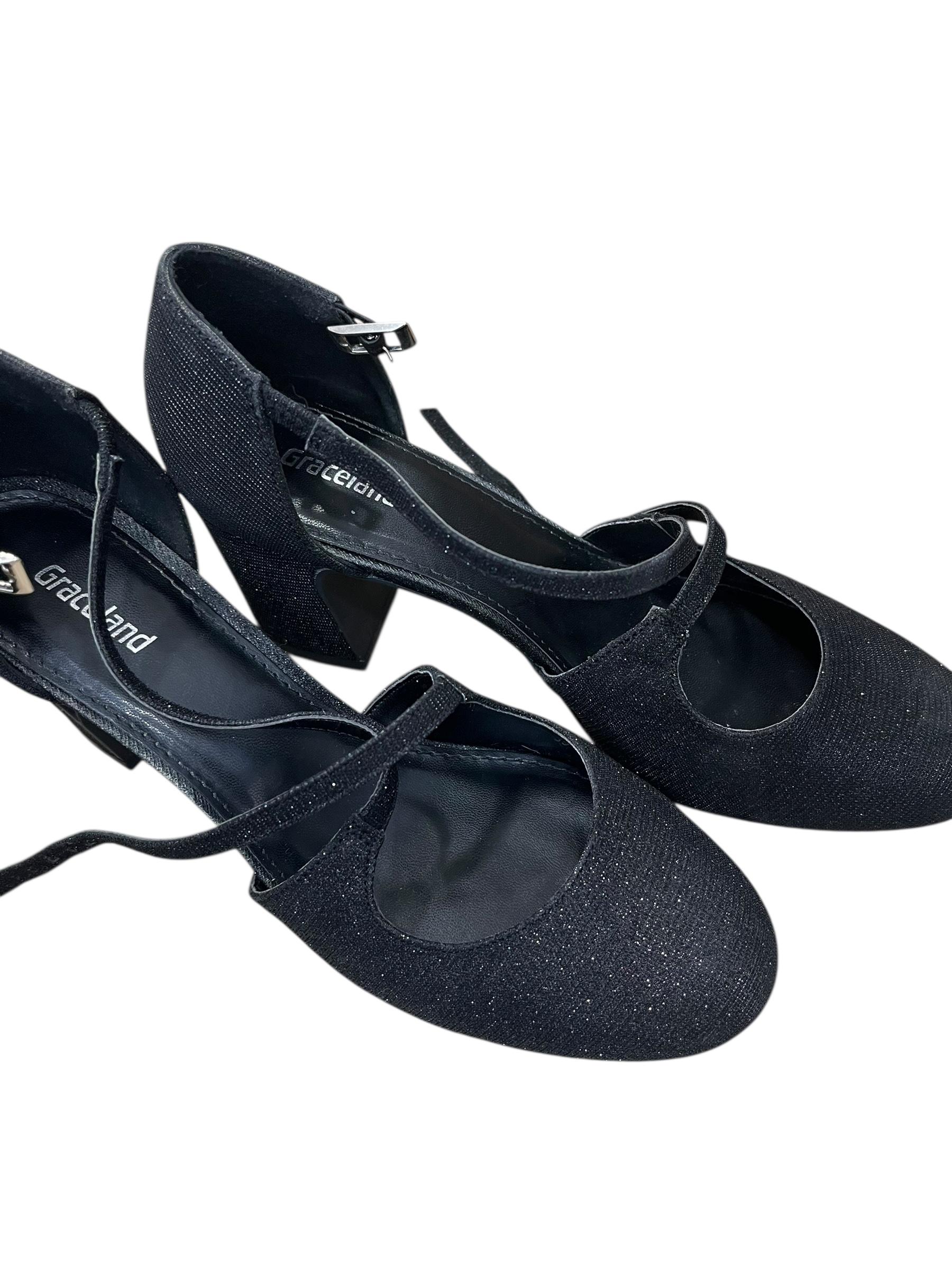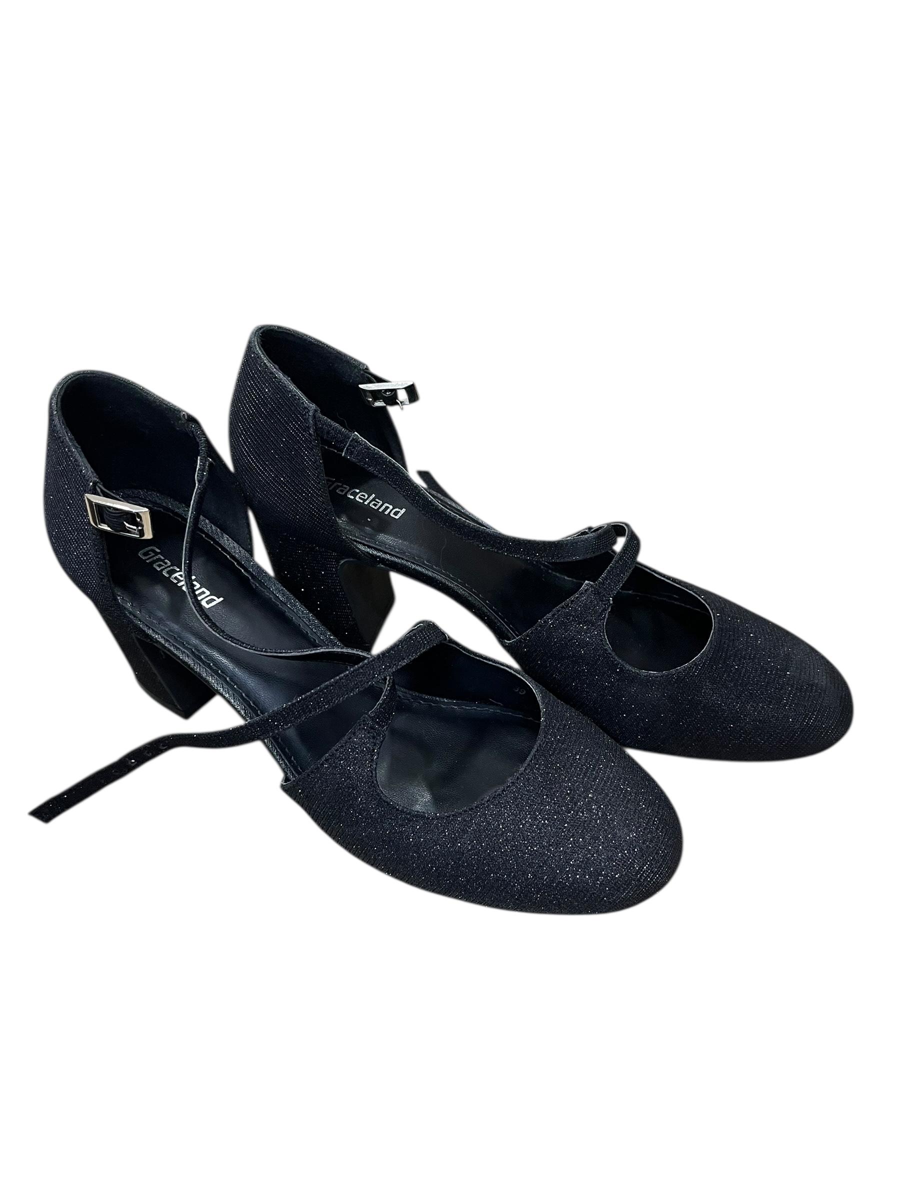 Graceland, sandali s peto, št.39, črna z bleščico.