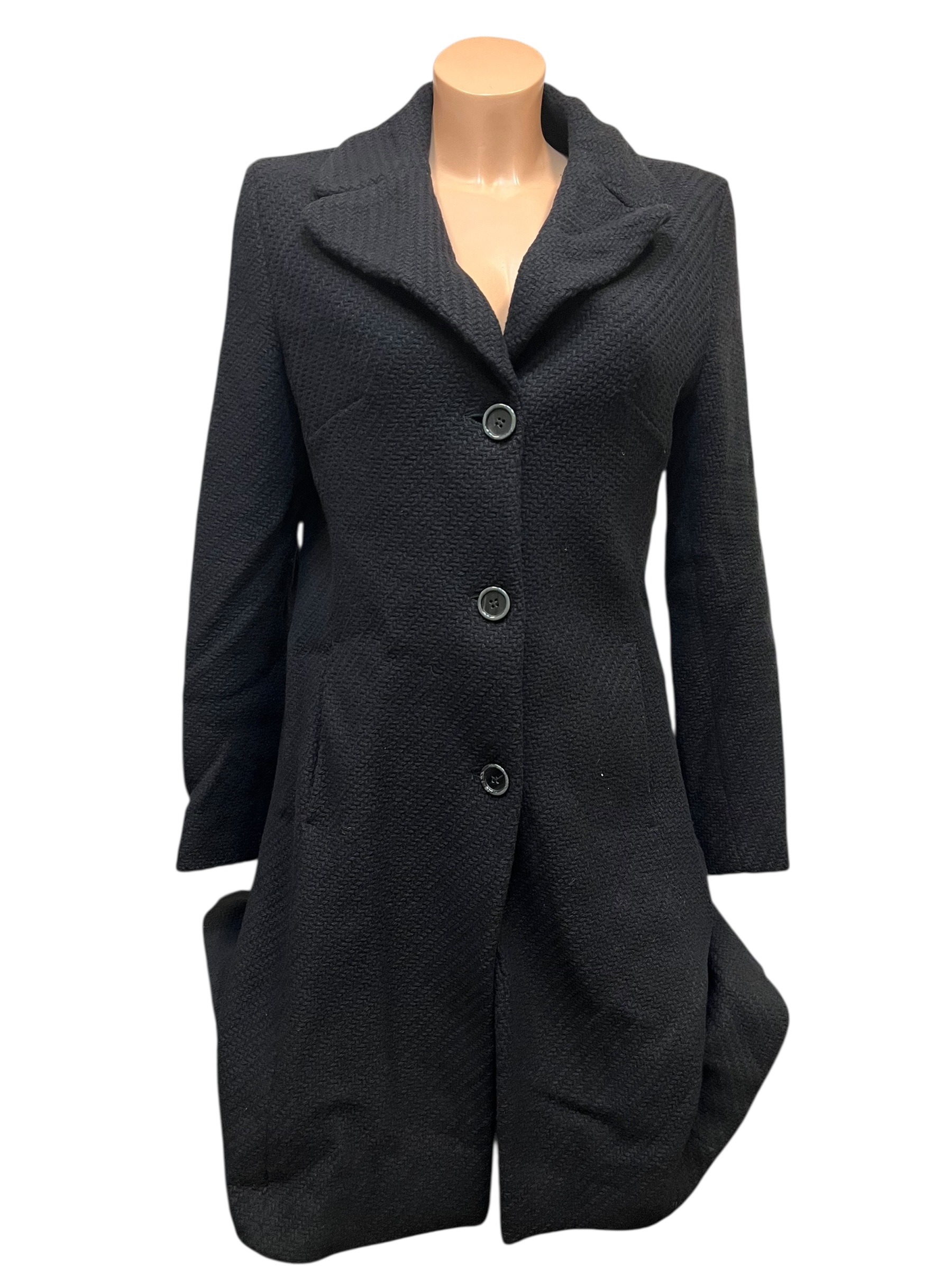 Benetton, plašč, št.M/L, črna, volna.