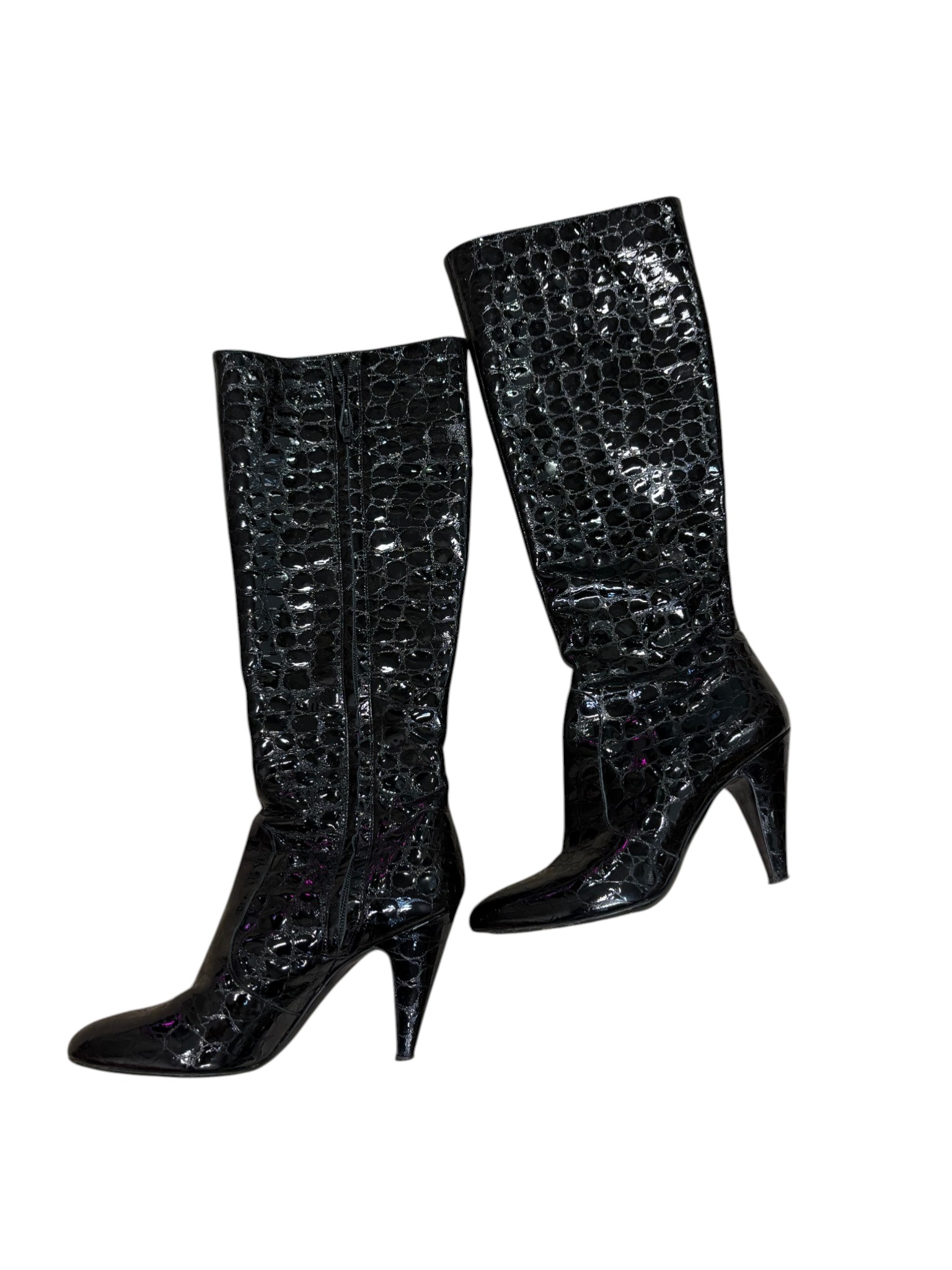 Studio Pollini, črni škornji, peta, pravo usnje, št. 40, zadrga za zapiranje.