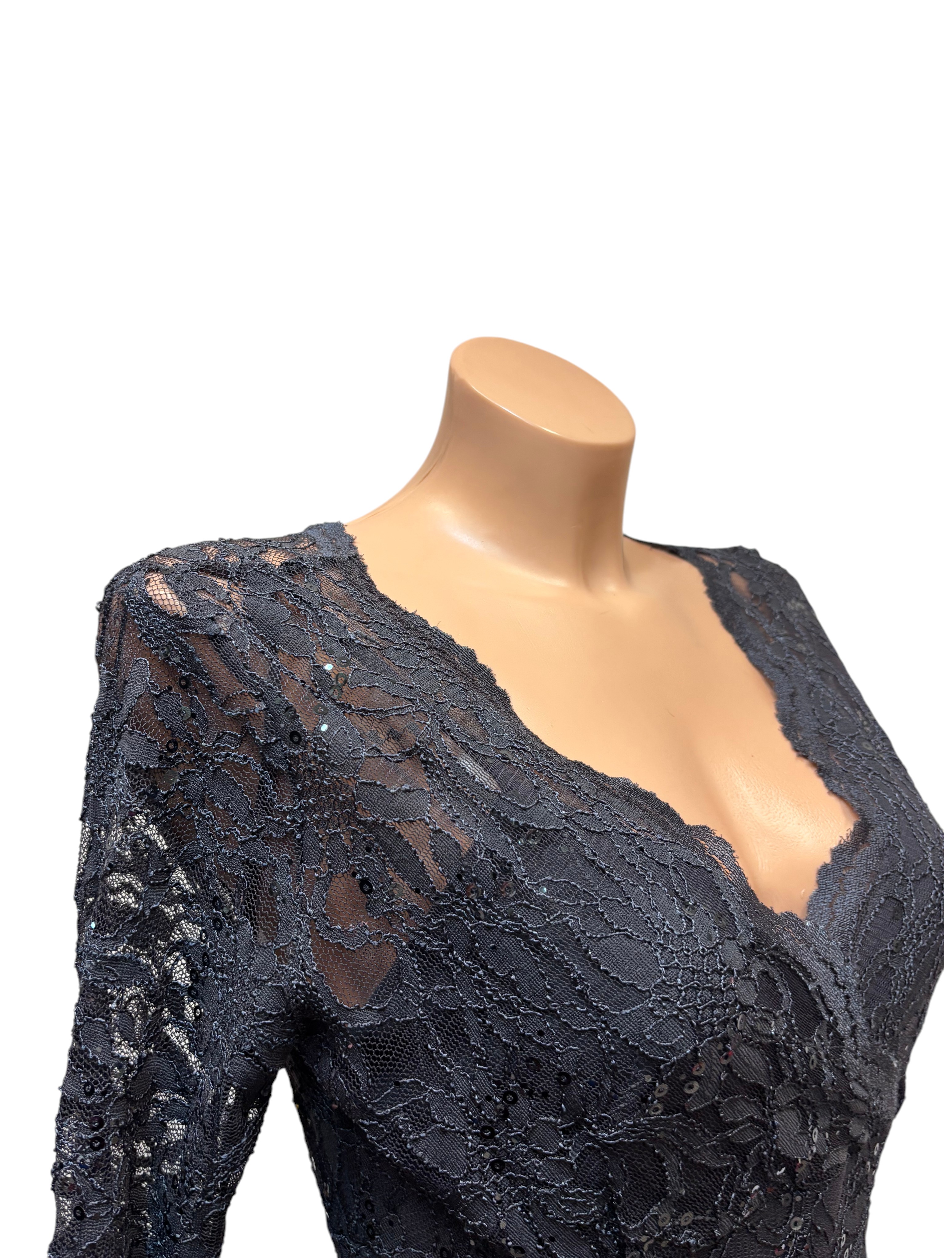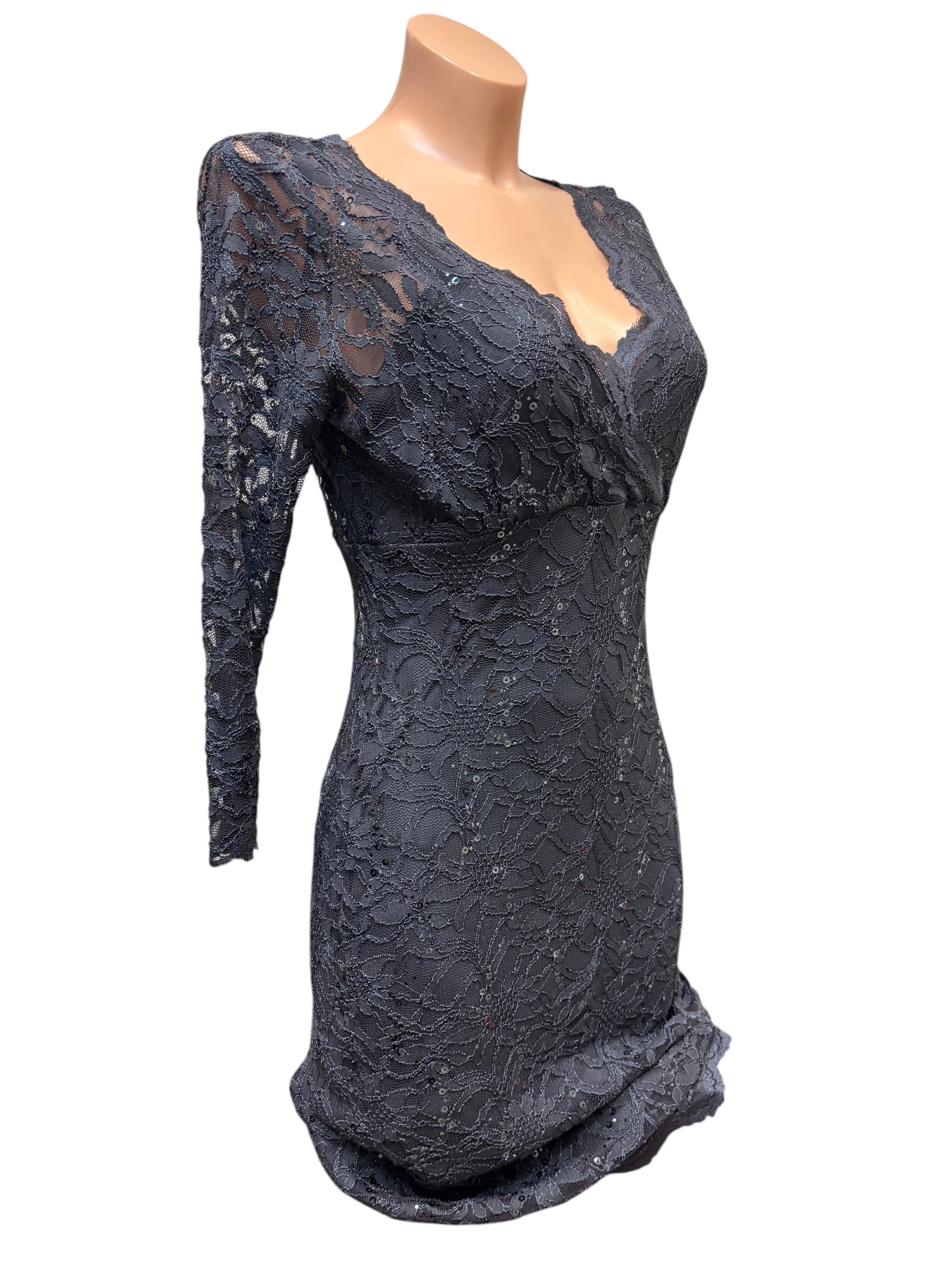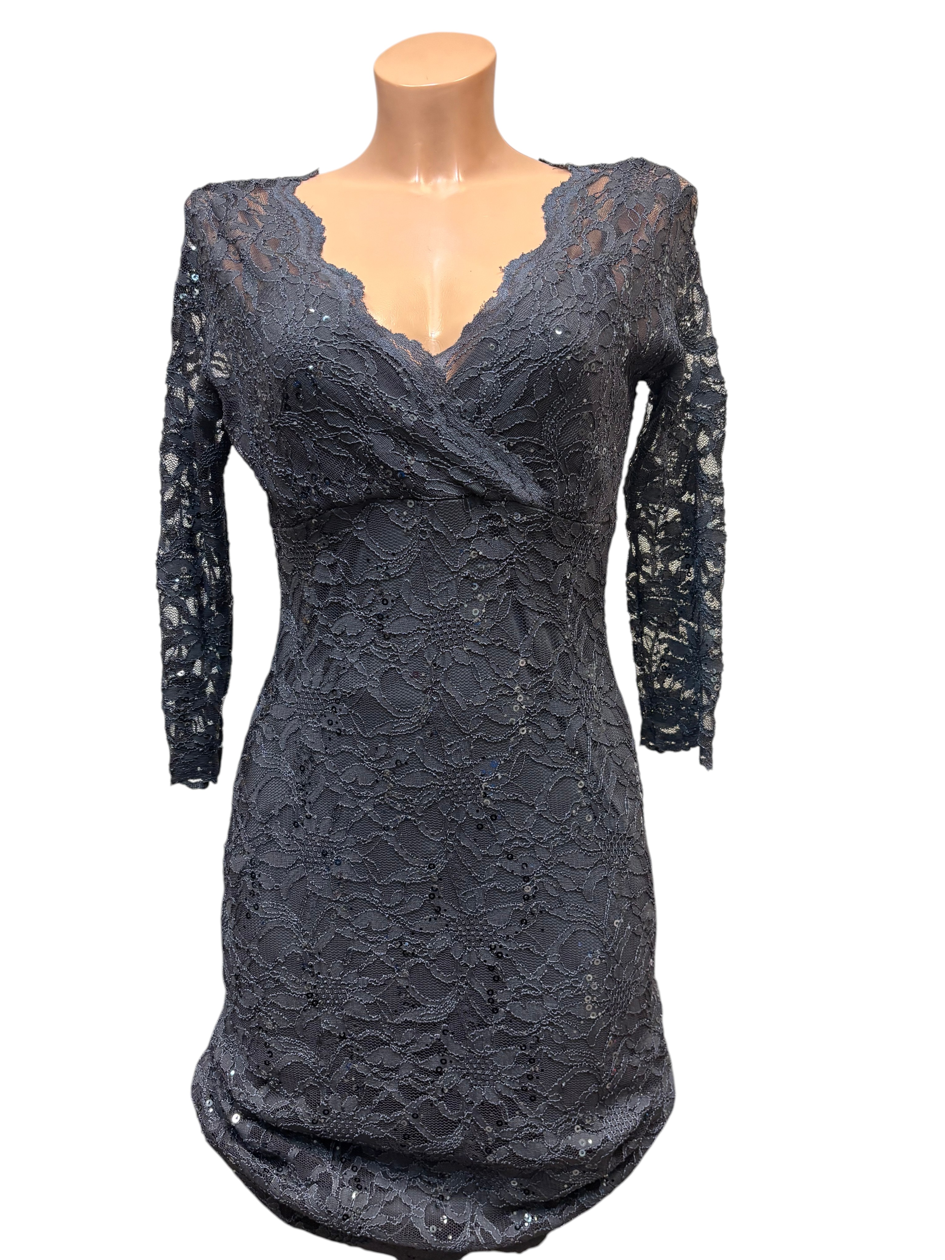 Marina Obleka, siva barva, dolg rokav, midi, št. S.
