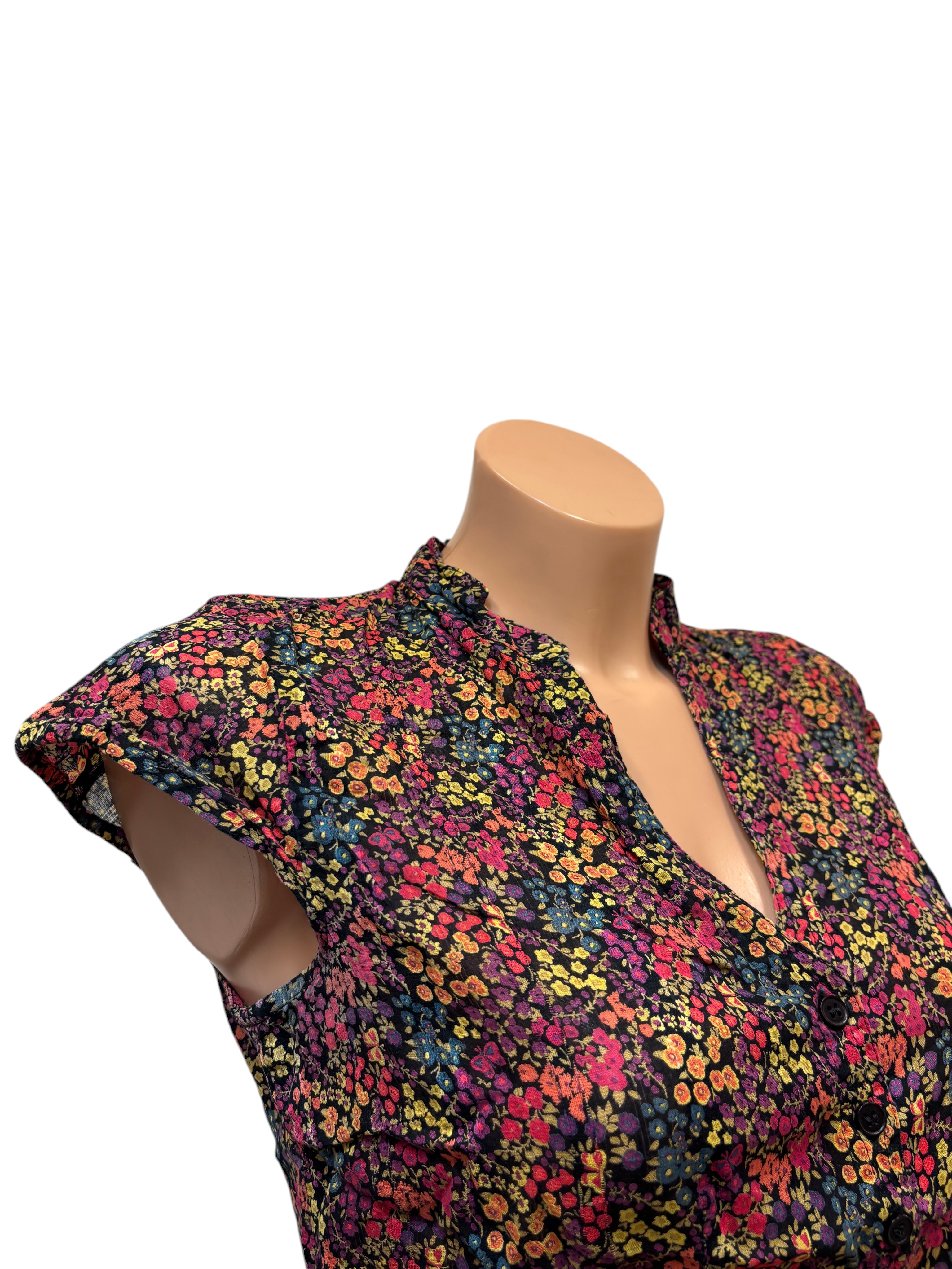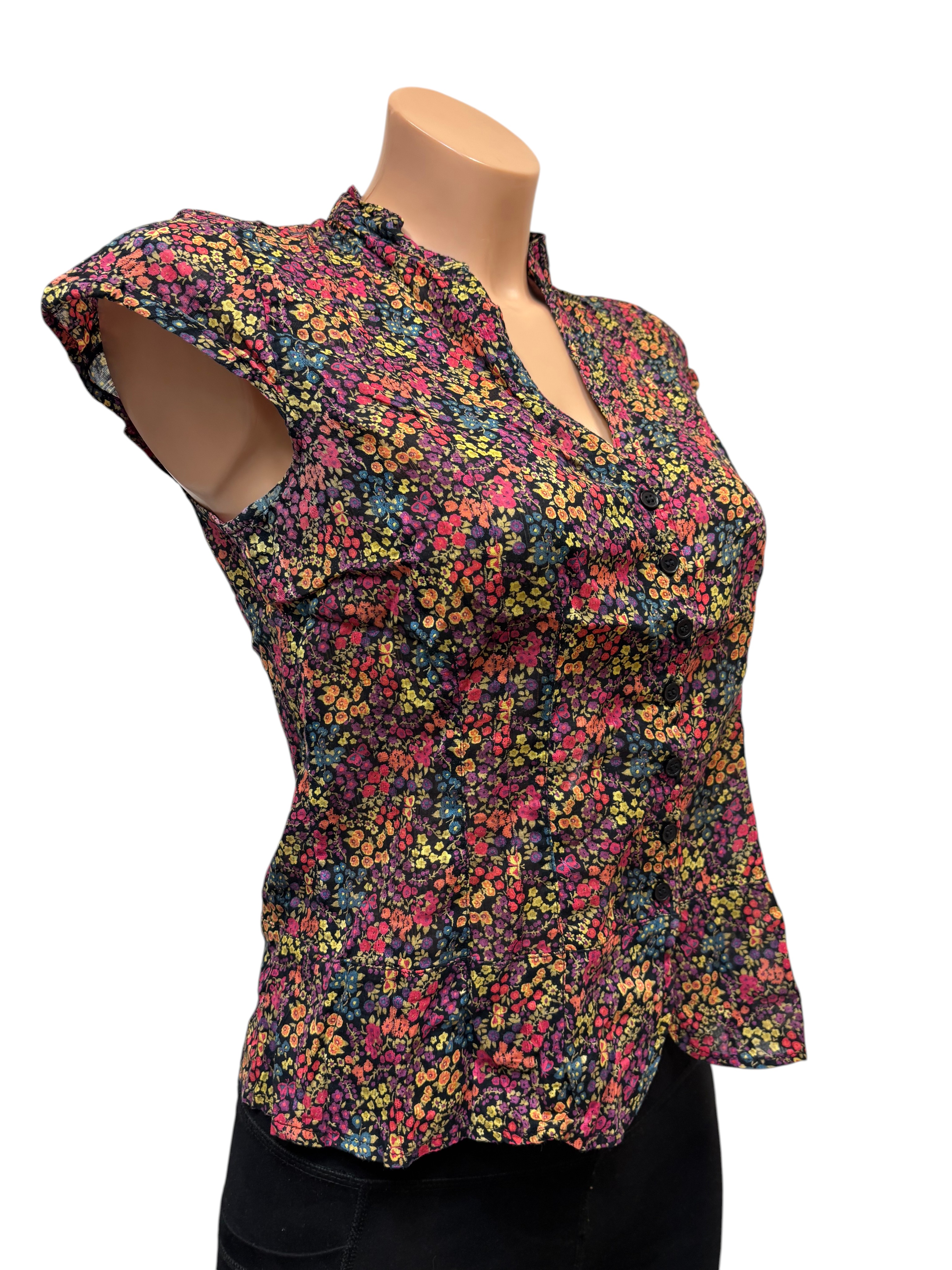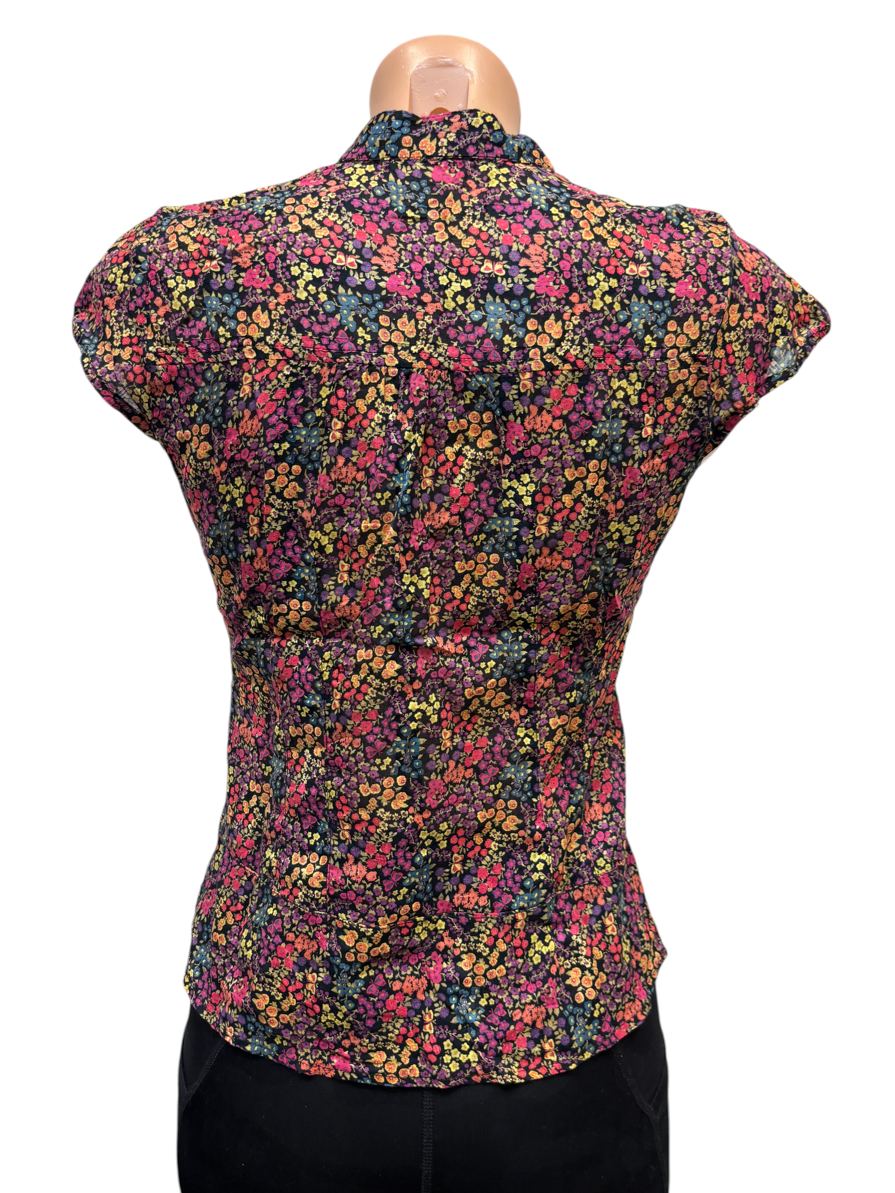 Srajca, večbarvna, cvetlični potisk, kratek rokav, št. XS.