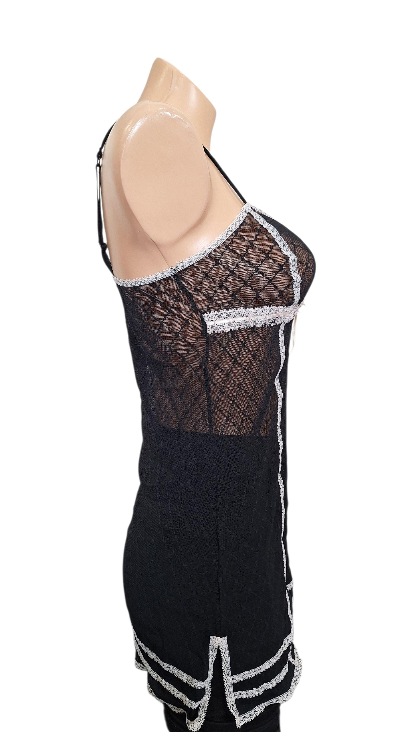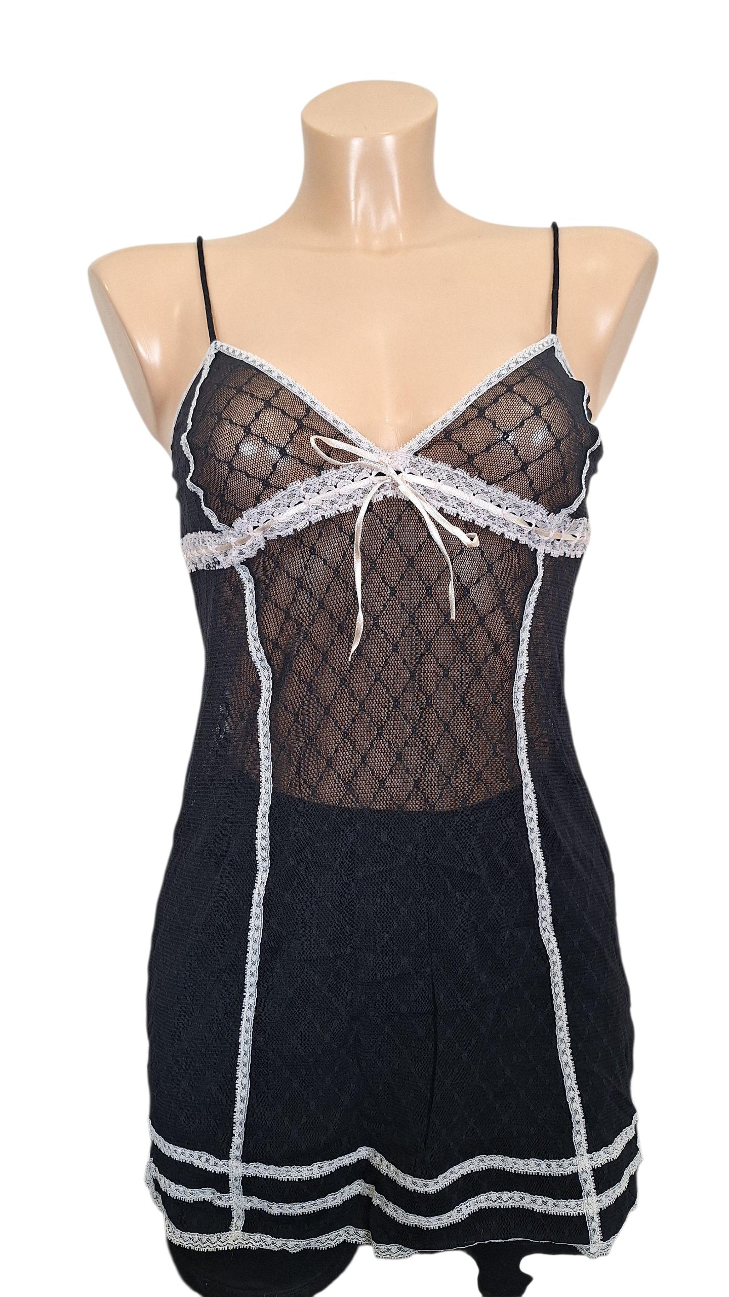Hunkemuller spalna obleka, na ramenca, mini, črna s čipko, št,M.